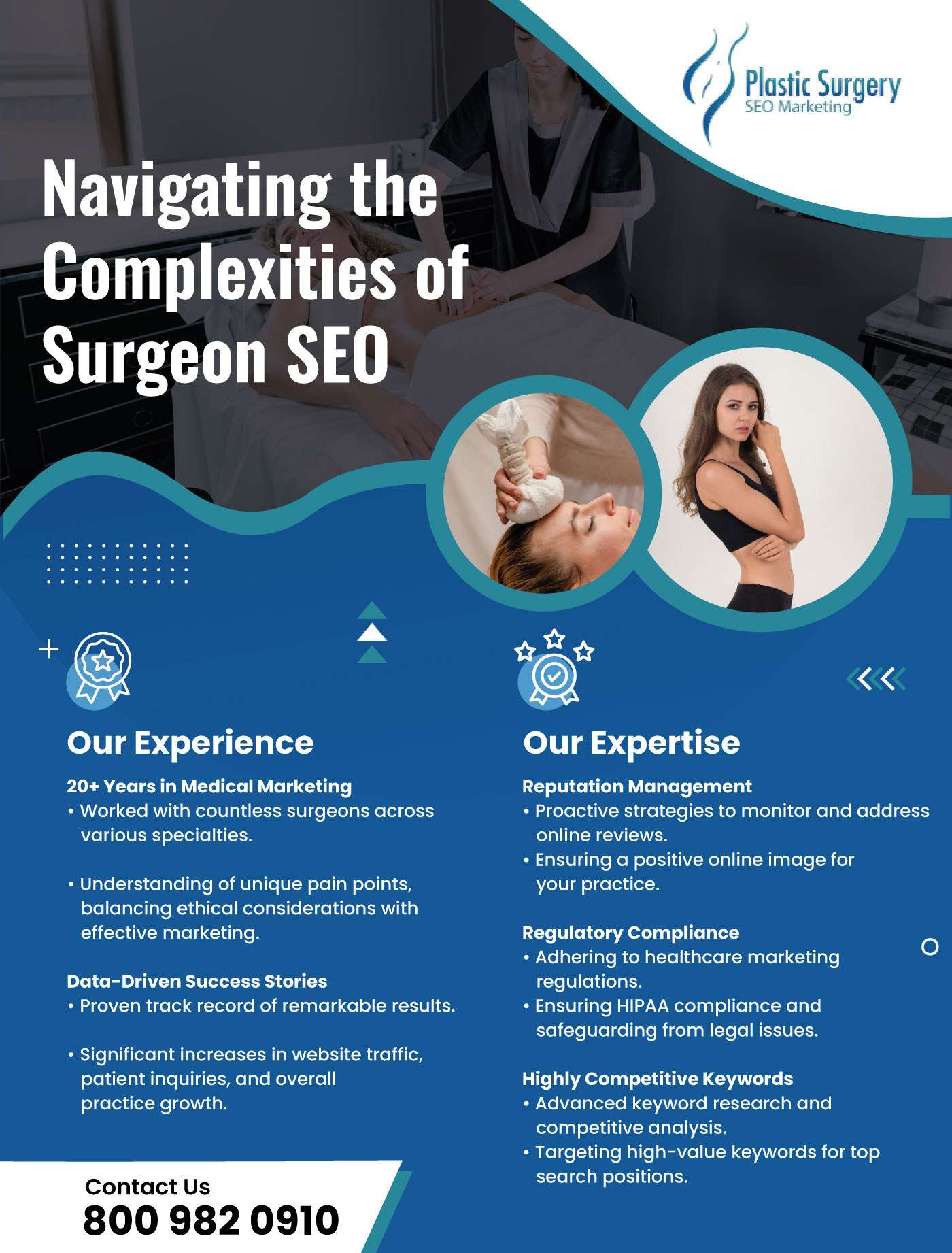- 20+ Years in Medical Marketing: We’ve worked with countless surgeons across various specialties, gaining invaluable experience in navigating the intricate landscape of medical SEO. Our seasoned team understands the unique pain points faced by cosmetic surgeons, such as balancing ethical considerations with effective marketing tactics.